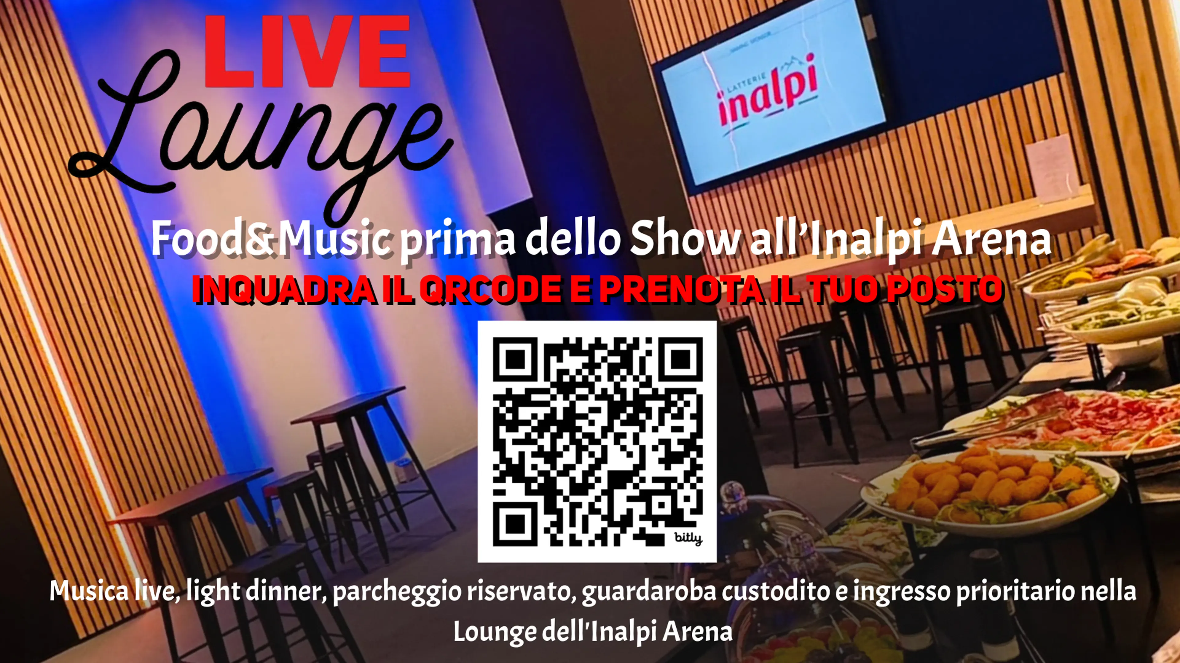 Musica live, light dinner, guardaroba custodito e ingresso prioritario nella Lounge dell'Inalpi Arena