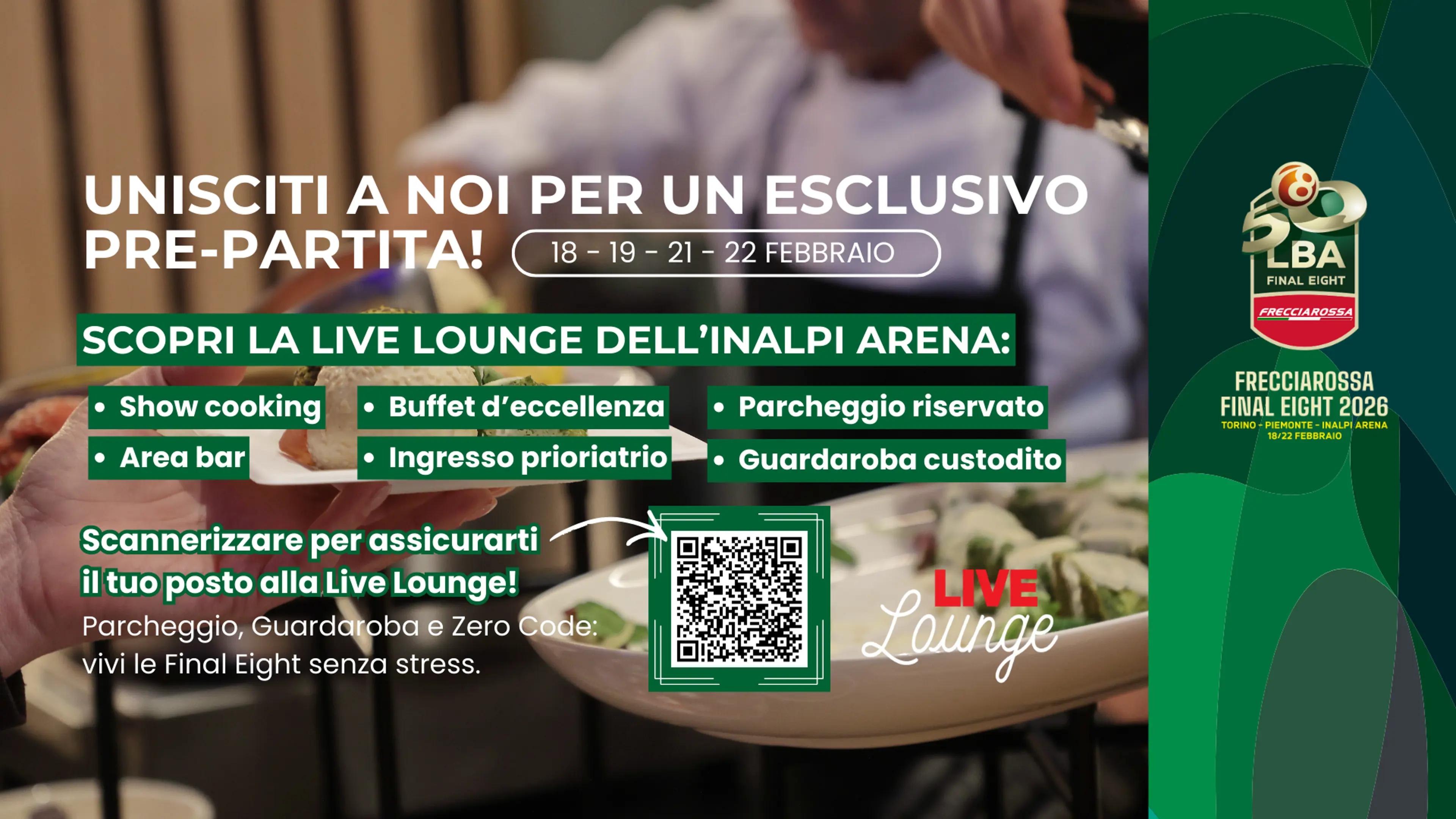Musica live, light dinner, guardaroba custodito e ingresso prioritario nella Lounge dell'Inalpi Arena